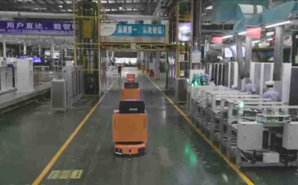 为车载冰箱物流配送打造的智能解决方案,,包含产中物流通过潜伏举升AMR搬运至线边,,,产后成品物流智能仓储,,,流程包含产中物流智能齐套入库,,,线边安灯叫料AMR智能配送至线边,,成品入库、、、、出库,,,,通过无人堆高车机器人,,,,智能仓储管理替代人工作业管理,,,实现更高存储、、、、更高效率、、、、更具柔性化的解决方案。。。